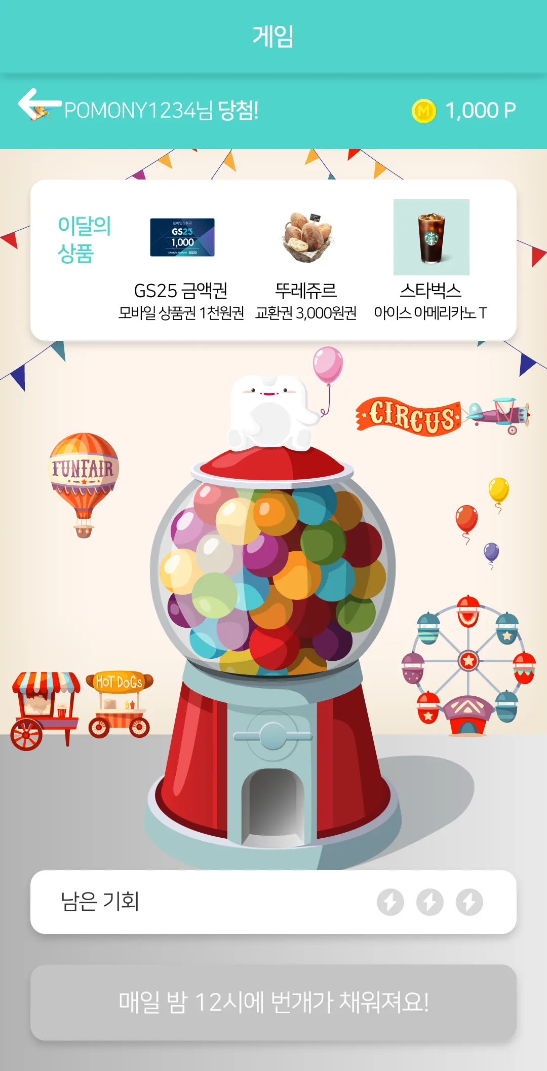 몬포인트로 상품 뽑기를 해보세요.