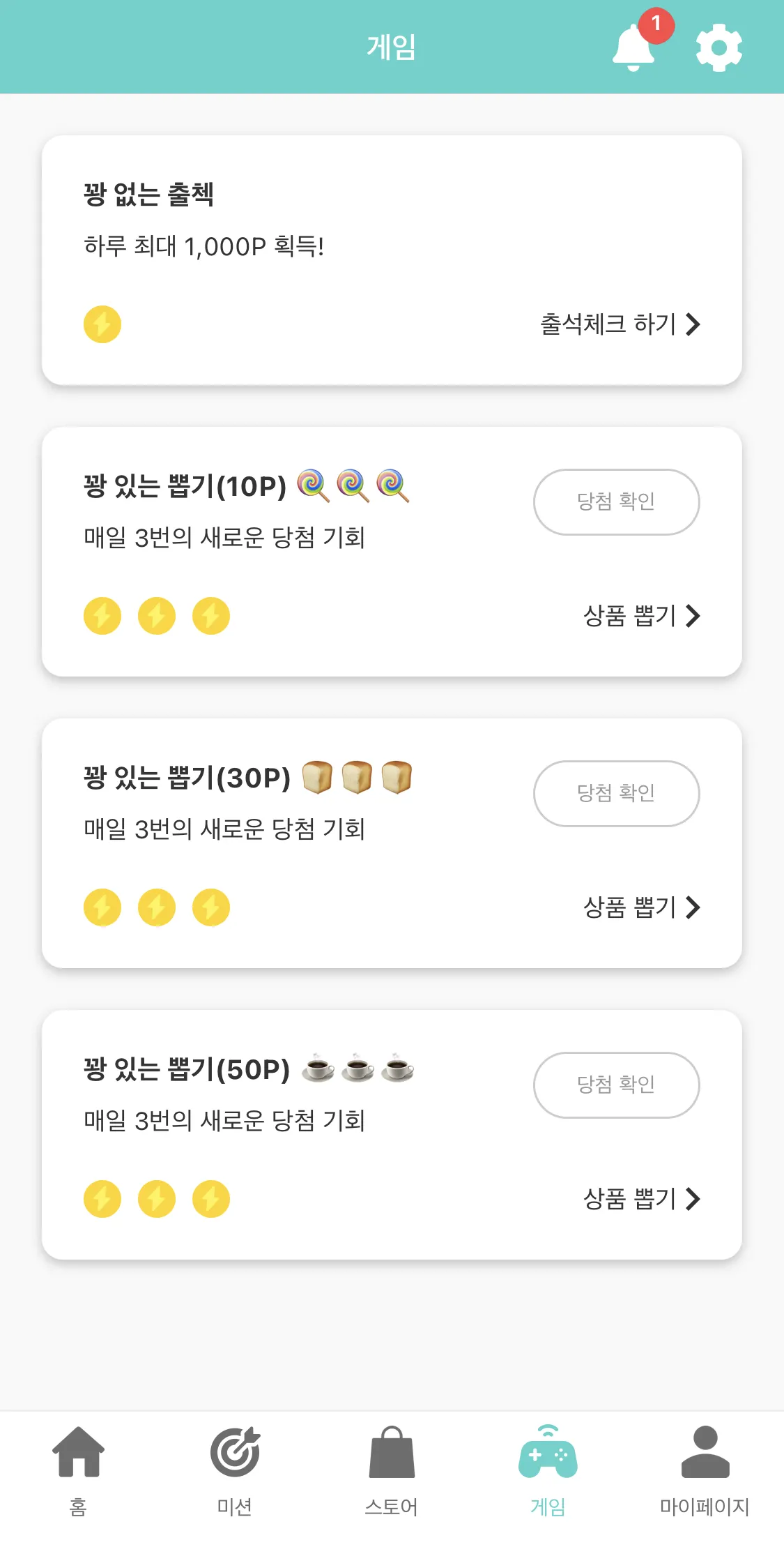꽝 있는 뽑기(50P) ☕️☕️☕️