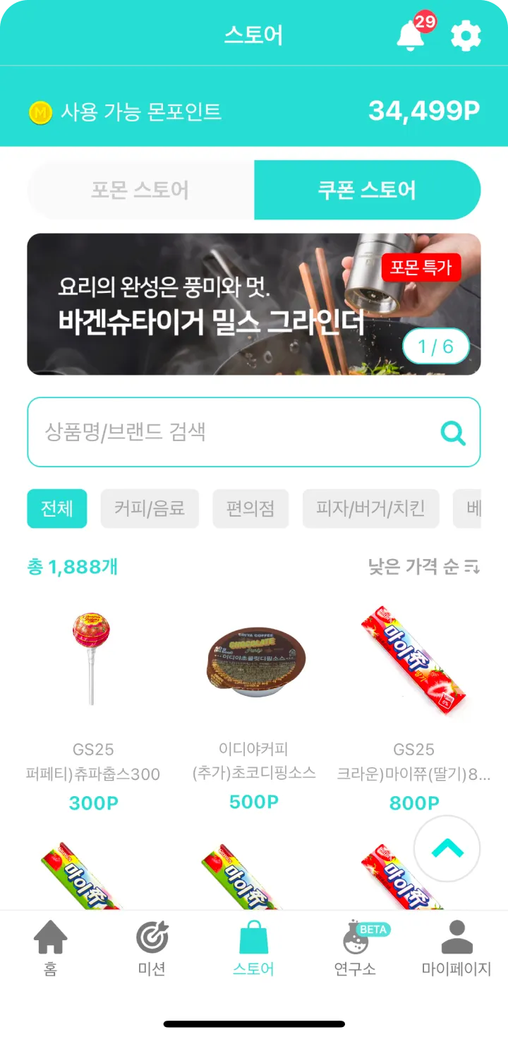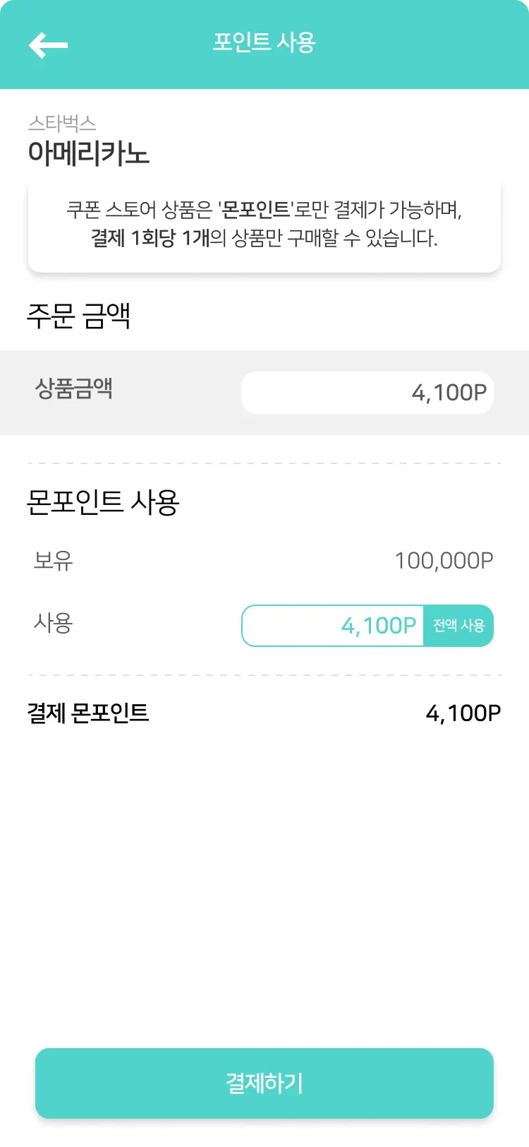 쿠폰 스토어의 상품은 오직 몬포인트로만 결제가 가능해요!