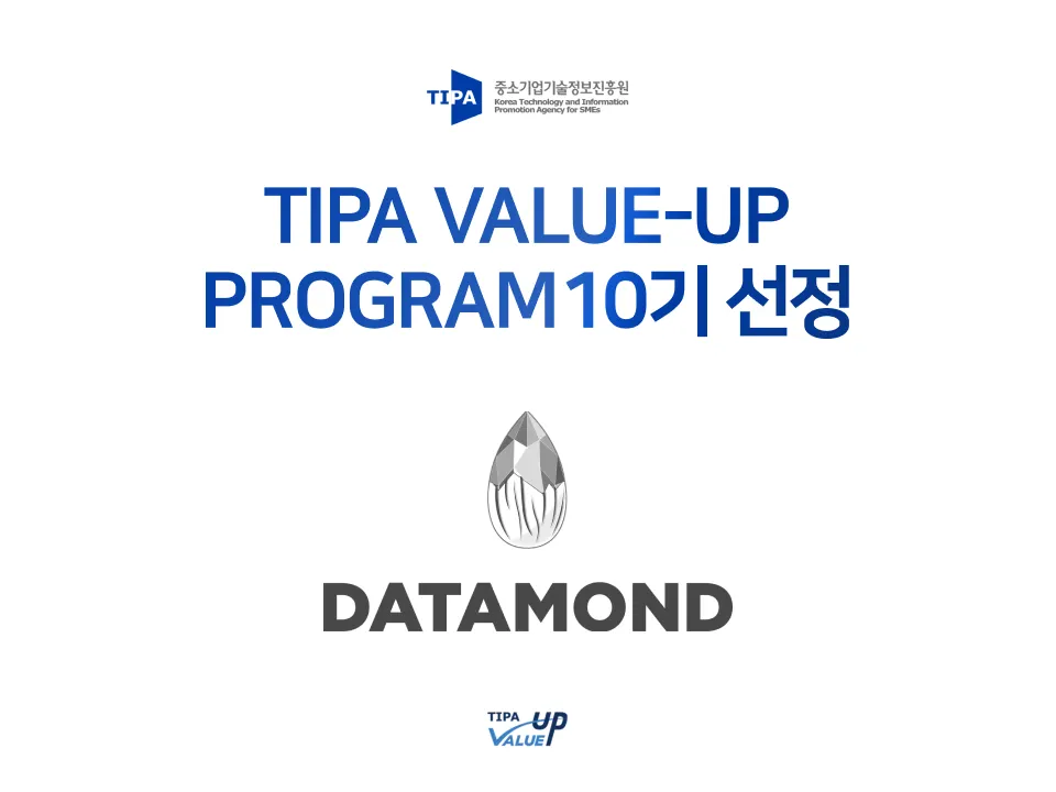 TIPA Value Up 프로그램은 중소기업 R&D 지원 사업 수행 기업의 VC 투자유치를 통한 사업화 성공 지원 및 유니콘 기업으로의 성장 기반 마련을 목적으로 스타트업 성장을 지원하는 프로그램이다. 데이타몬드는 IR 역량강화를 위한 기업 진단 및 맞춤형 교육, 외부 투자자 대상 투자 설명회, 투자 유치 네트워킹 행사 등을 지원 받게 된다.