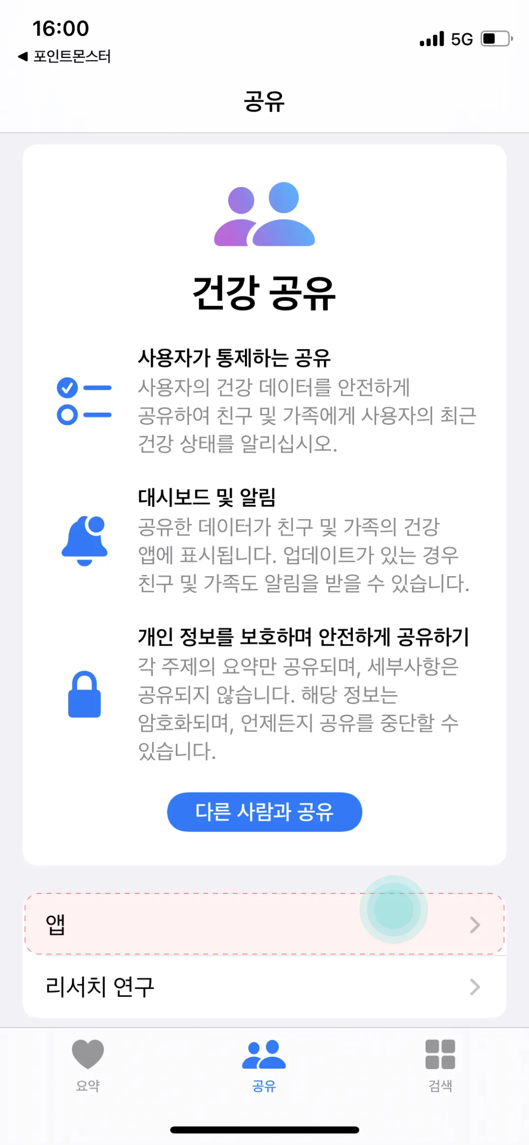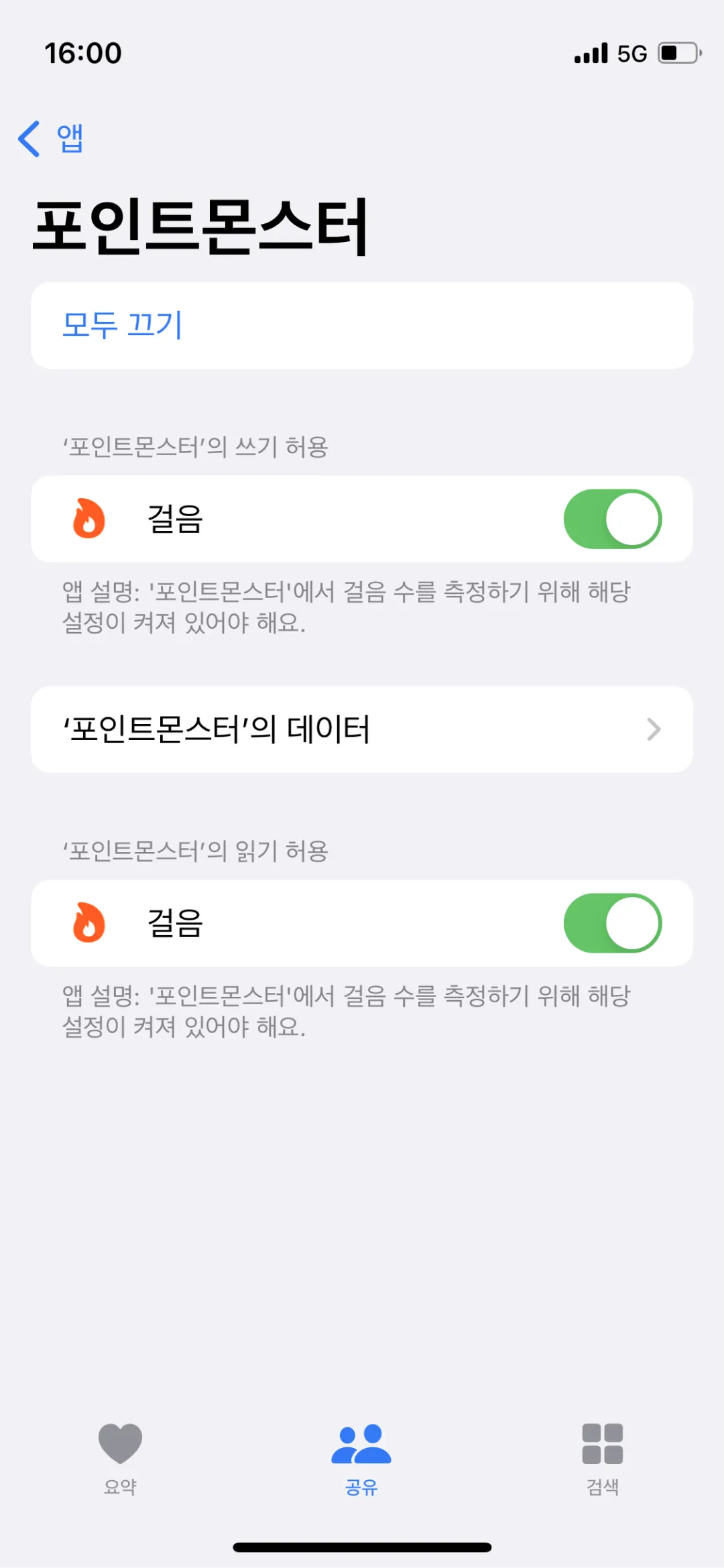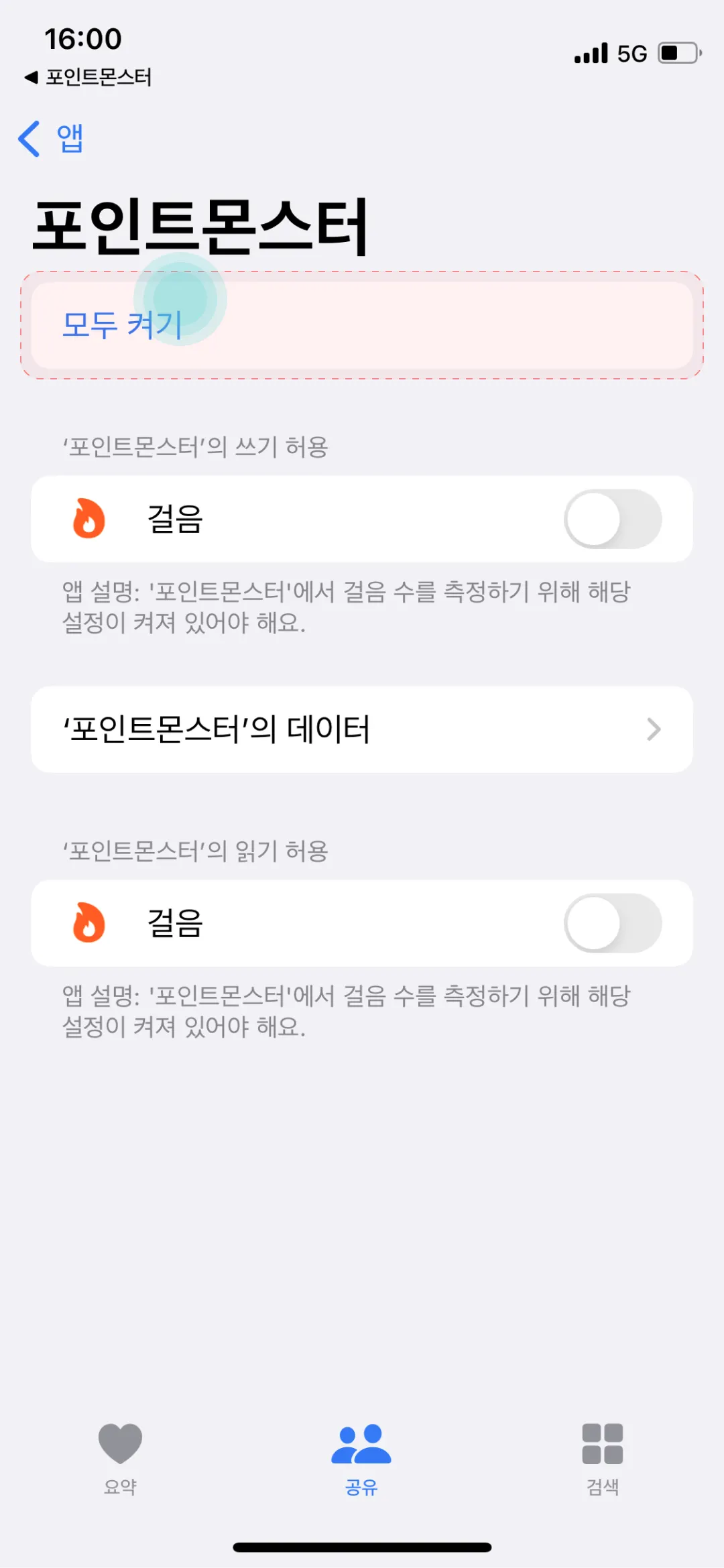 걸음 버튼 활성화를 확인하고 포인트몬스터 앱에서 만보기를 다시 시작하면 연동 완료!