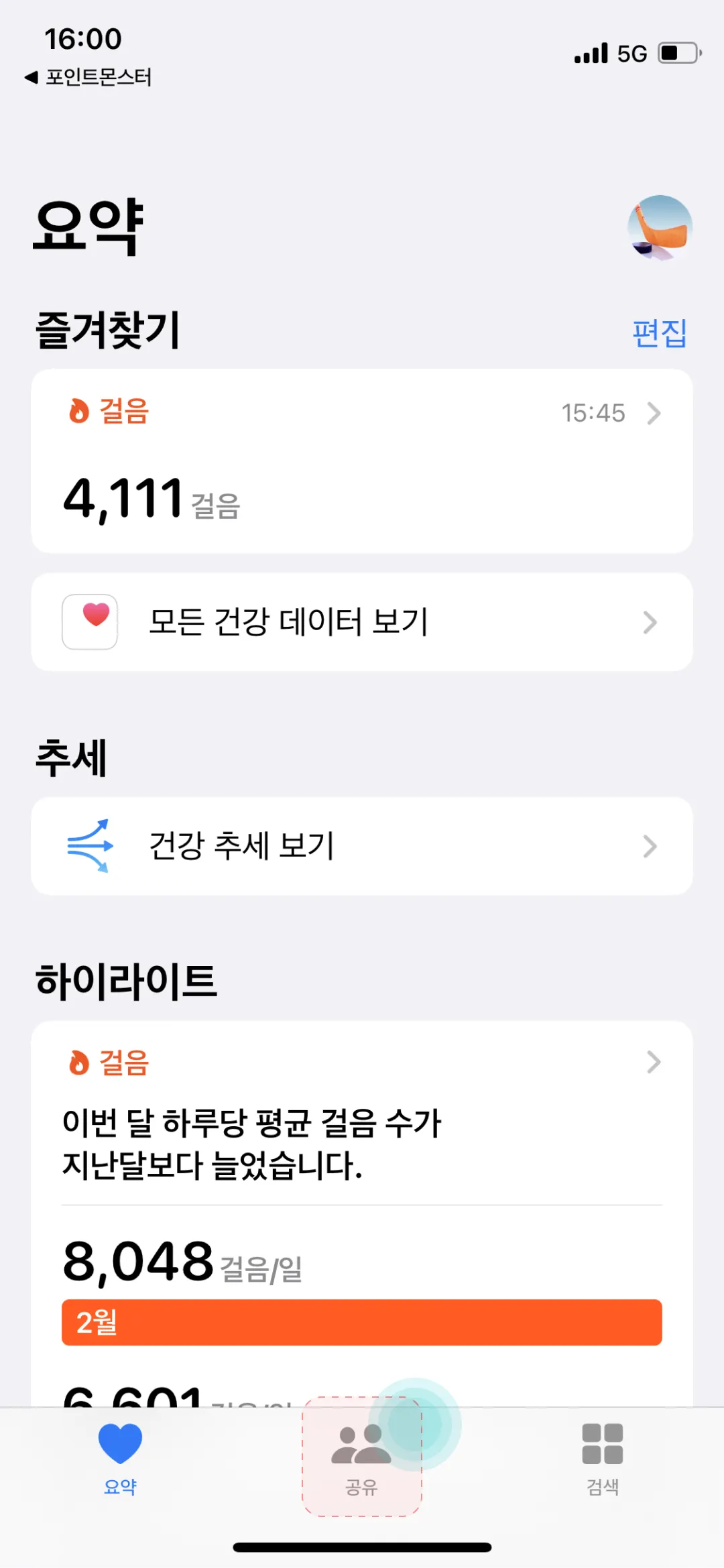 포몬 만보기는 iOS 건강앱의 걸음 수 정보를