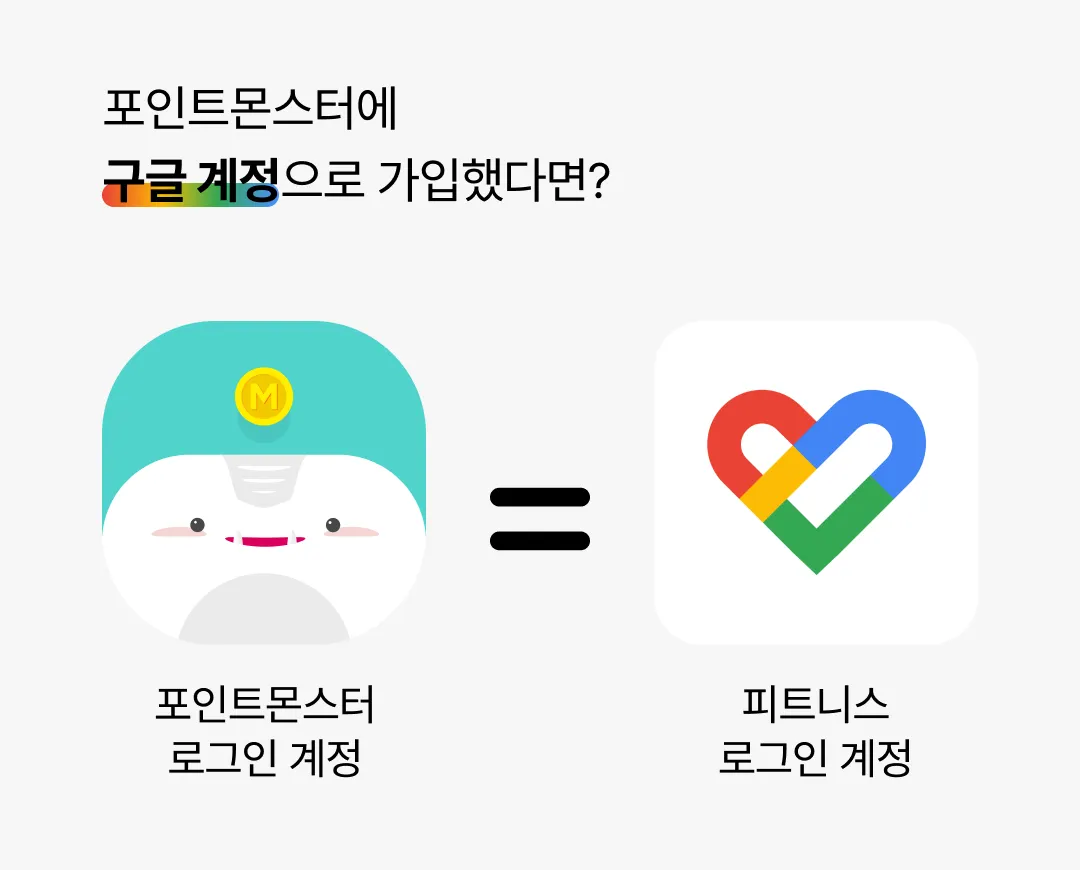 만약 포인트몬스터를 구글 계정으로 가입했다면, 피트니스 가입 계정도 동일하게 맞춰주세요!